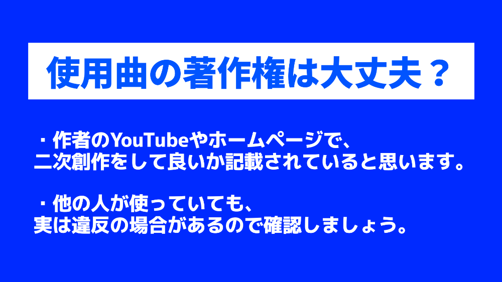 ※参加作品に著作権侵害があった際、運営は責任を負いかねます。著作権違反か確認できた場合は、再生リストや表彰対象から除外いたしますので、くれぐれもお気をつけください。